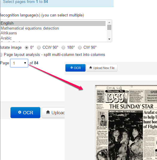 Free Online OCR is an interesting website that lets you preview DjVu file as well as helps to extract text stored in the pages of your file. Extracted text can be edited online as well saved to PC as plain text file. You can upload an online file or file available on your PC and view it. You can also jump to a particular page by selecting the page number.