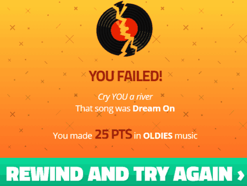 - Now if you choose wrong answer then you will get the message “You Failed”. And, it displays the correct answer. It also displays the scores that you earned in that music poison. As shown in the below screenshot, failed message displays with score, wrong and correct answer. Option “Rewind And Try Again” directs you to the page where you have to choose the music poison again to continue the game.