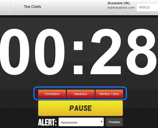 Mariana Timer lets you add multiple time intervals together. For every single time interval, you can set different time in hours:minutes:seconds. Apart from this, you can also create a custom name ‘Shareable URL’ of your timer. Once you have started a timer, you can copy the URL, and use it on your mobile device or share it with anyone. This Shareable URL can also be generated when using Pomodoro and Kitchen Timer.