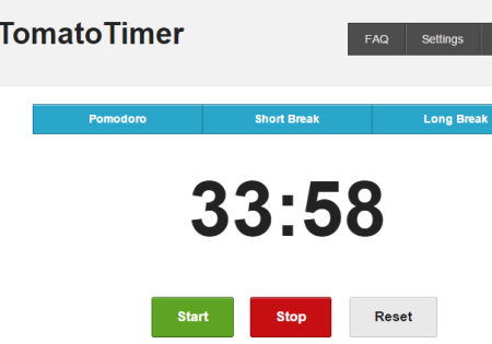 Tomato Timer is the last website in this list that comes with neat and clean interface. Although it is inspired by tomatoi.st website, but provides multiple features. It supports hotkeys to start/stop the timer, Pomodoro, short break, and long break. Apart from this, it comes with 5 different alarm sounds and desktop notification feature to remind you of the end of a Pomodoro/break. However, desktop notification feature is currently supported in Google Chrome browser only.