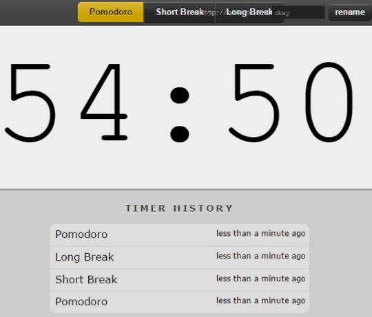 Interesting feature of this website is that you can generate a shareable URL of your timer, like the feature provided by Marinara website. Apart from this, it also stores ‘TIMER HISTORY‘. This will help you to check the time when you have taken a Pomodoro, Short and Long break.