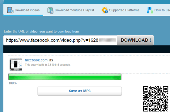 Downvids.net is an interesting website to download Facebook videos in Low, HD, or Normal quality. Apart from this, it can also help to save any video as MP3 file. So it can also be used as Facebook video to MP3 converter. Process to grab Facebook video is very simple. All you have to do is enter video URL and tap the DOWNLOAD! button. After this, it will provide a button to download that video. You can also use this website to download Vimeo videos.