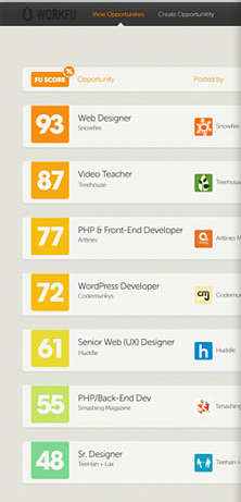 Jobs on WorkFu are called opportunities, that’s what jobs basically are. When you connect your Twitter account with WorkFu it will analyze your Twitter account search through your Tweets, and other personal information in order to make a better image of what your skills, and interests would be. Once it does that WorkFu will start displaying jobs which are suited for you, your skills are measured with FuScore: