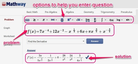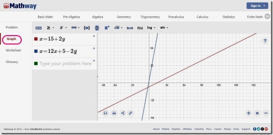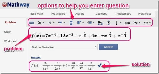 Mathway is a free online math problem solver that solves basic and advanced math problems. It can solve basic math, pre-algebra, algebra, calculus, pre-calculus, geometry, statistics, liner math, algebra, and chemistry problems. You can quickly find the correct answers to the complex questions, and then save them in the website. Besides solving math questions in seconds, you can also solve and plot graphs, create and save math worksheets, and learn more about mathematics by using the Glossary section of the website.