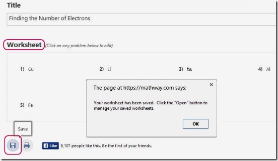 One good thing about this website is you can easily and quickly create math worksheets. The website has pre-built options to set the worksheet specifications like: topic, number of questions, columns, and blank row. Using these you can create a math questionnaire worksheets. After creating a worksheet you can save them in the website. You can save not just the worksheets but each single problem that you solve in the website. There’s a save button at the bottom of the page.
