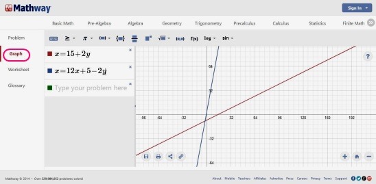 The interface is well laid out, making it easy to work. All the different math domains are present at the top, and the major actions that you’ll do in the website are at the left in the form of toggle buttons. These include: Problem, Graph, Worksheet, and Glossary.