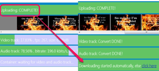 Uploading a file may take some time. Once file is uploaded, your media file will be converted & downloaded to PC automatically.
