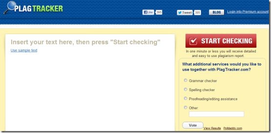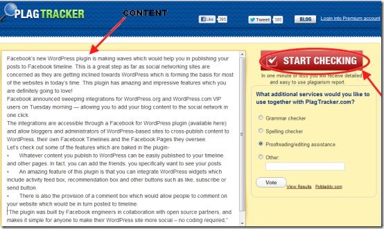 - As you can see in the above snapshot, you are supposed to copy the content in the space provided. In order to check the accuracy of the plagiarism detector, we added a mix of original content and copied content and pasted it in the given area. PlagTracker.com in addition to plagiarism detection also offers other services such as:
