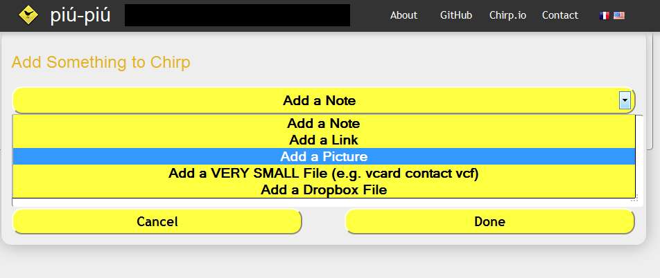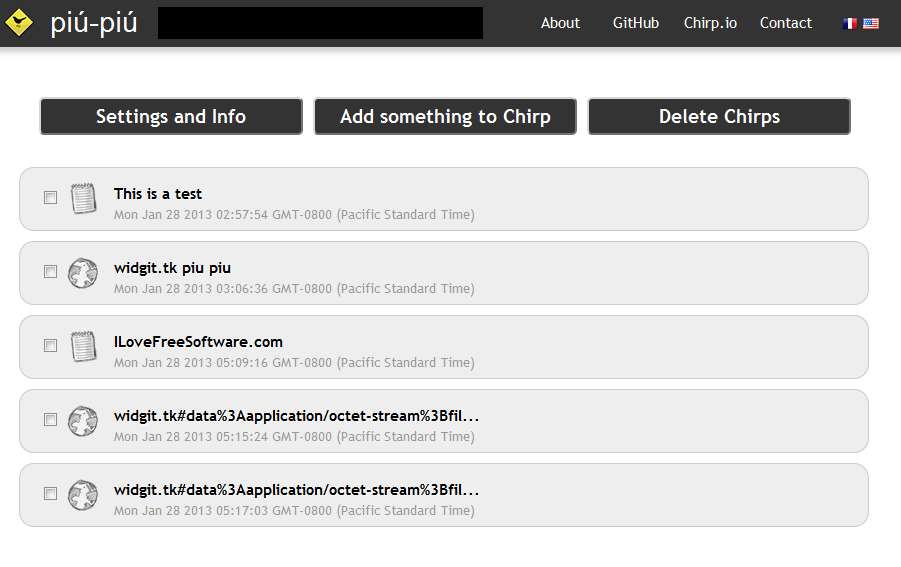Chirp and the Piu-Piu buttons are a very fresh and interesting way of how you can share your information. Give it a try and see how it goes. Remember the service is still in development, so there’s more functionality to come. Free service.