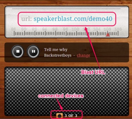 SpeakerBlast (beta) is a free online service that helps to play same music on multiple devices together from anywhere. You need to create a blast that helps to upload a song from PC or search a song online. After this, a unique link is generated that you can share with friends to join the session. It keeps devices in sync so that all the devices will be able to play music from the same point. It’s really a nice service to share and play the same song with friends and you can even change song anytime. It works with iPhone, iPad, Android (requires Chrome browser), and Google Chrome on PC.