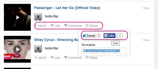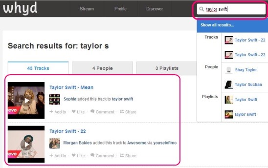 Like every other social network, such as Facebook and Twitter, this music streaming website also, lets you comment, share, and like the tracks shared by your friends in the Whyd network. Plus, it also lets you add the shared music track into your Whyd playlist.