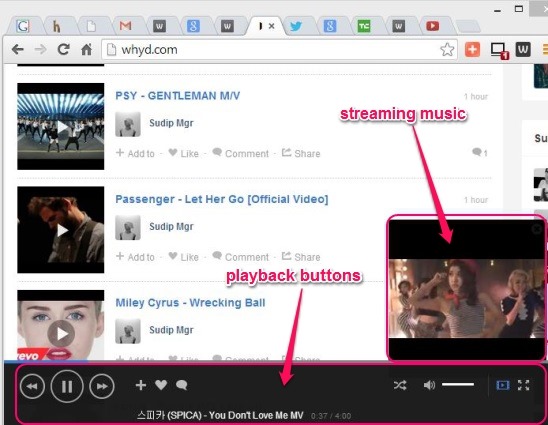 Whyd is a free music streaming website to find, share, and stream music. It is more of music streaming social network, where you can share music that you like with other Whyd users across the globe, and connect to them. Using this website, you can share music tracks from YouTube, DailyMotion, Soundcloud, Vimeo, and more. This is a good website for sharing music. You can find new people, and subscribe to one’s who have same music interest as you do, play the tracks which they shared, like, comment, add tracks to your playlist, share tracks in Facebook or Twitter, and manage your playlists.