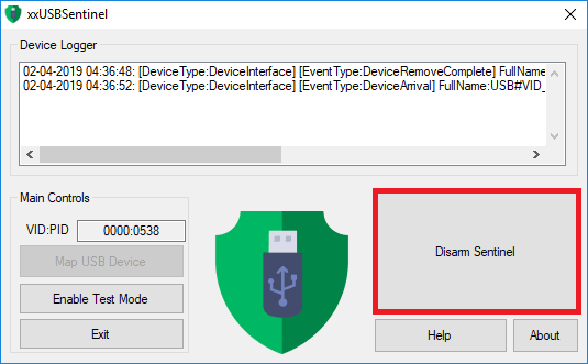 At this point, you have specified your key USB device. To start this tool to shut down PC, simply hit the “Arm Sentinel”. Now, the tool will start watching the key USB device. If someone removes that device from the system, it will trigger fast shutdown of PC.
