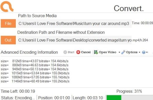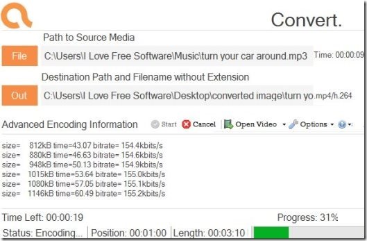 Aero Convert is a simple audio to video converter. The main limitation with this software is that it lets you convert only one file at a time, unlike all the software above that let you bulk convert audio to video. Also, it does not provides any advanced settings for output video. However, if you are looking for a simple audio to video conversion option, this software will do the trick.