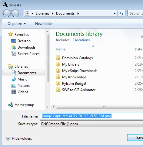 - Capture can be saved as a PNG image – only PNG format is supported