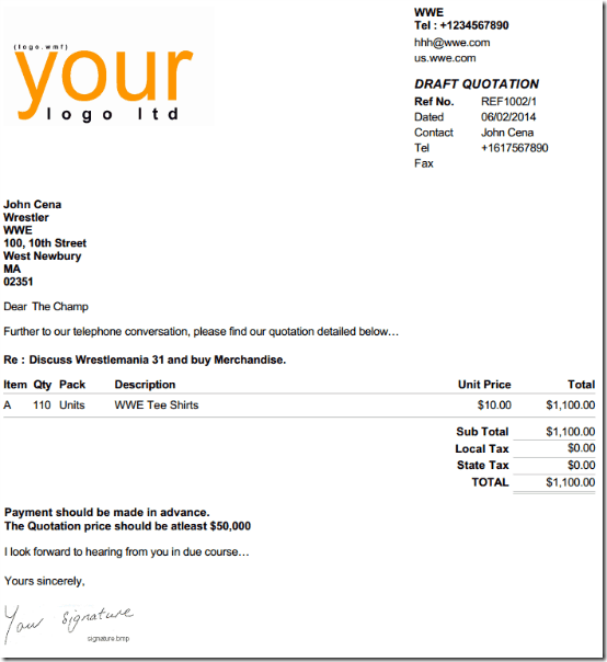 - Ability to customize your company’s logo, and add extra information as per requirement.