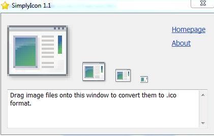 Simplyicon is very easy to use. SimplyIcon creates icon in sizes 32*32, 24*24, and 16*16. If the image is big enough, it also creates icons in size 128*128.
