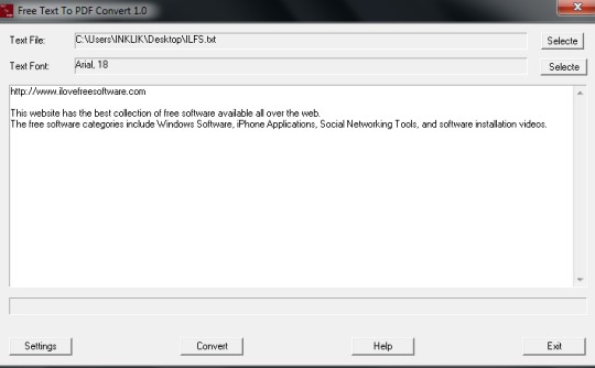 Free Text To PDF Convert also lets you view added text file on its main interface, like it is visible in above screenshot. Once you have added a text file, you can do changes (if any) to text file content and can convert it into pdf document. But note that changes will not be finalized for original text file, it is for output pdf only. Moreover, before starting the conversion process, it also lets you apply text font, style, and size for output pdf.
