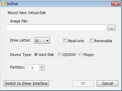 This free image mounting software consists of three different applications, image mounter, which can be seen on the screenshot below, RAM disk creator and the virtual disk driver manager.