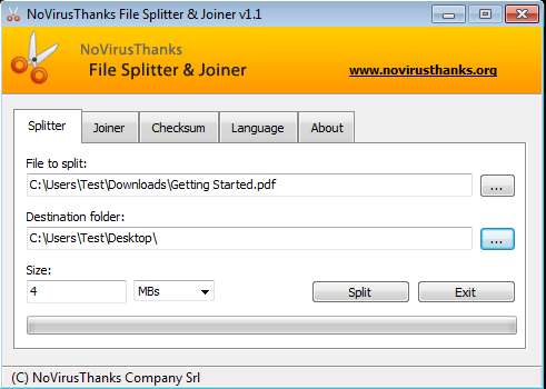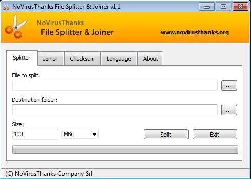 NoVirusThanks File Splitter & Joiner is, as the name of the application so clearly states, a free file splitter and joiner which you can use in order to cut up large files and then again to join cut up files that were split before. This is very useful with file hosting when you are limited in the size of file that you can upload, which is usually the case with free accounts.