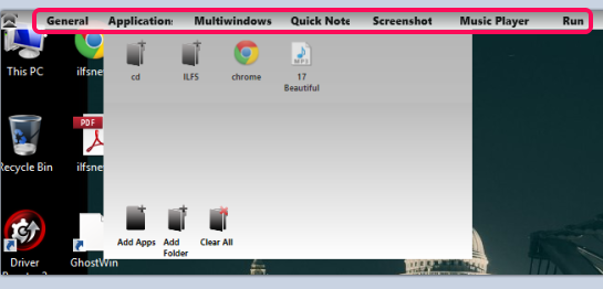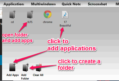This is another useful tool of this software. Using this tool, you can add all your frequently used applications in one place (on its pop-up window). After this, you can open the popup, whenever needed, and can launch any application quickly. You can also create multiple folders and add favorite applications to those folders.