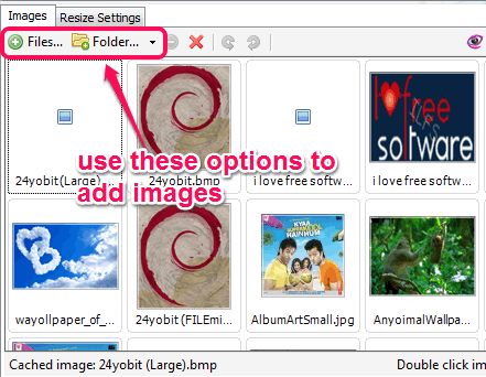 Now you need to open its interface and add images on its interface. Although it supports drag n drop feature to add images, but this feature didn’t work. So you can use Add Folder option or Files option to insert images on its interface. It supports bmp, tga, gif, jpg, tiff, png, etc. images. After adding the images, you will be able to view thumbnails of images.