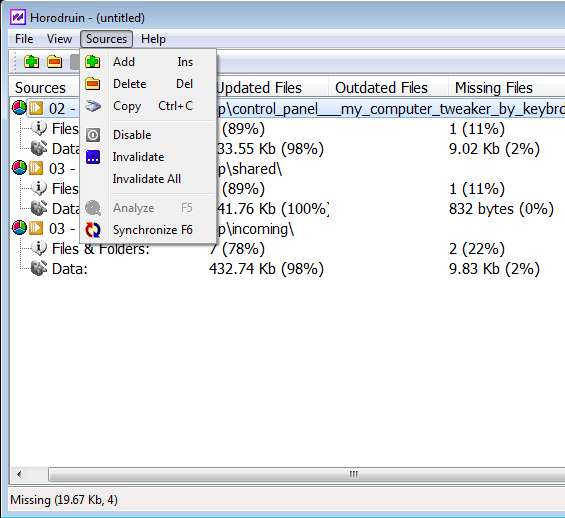 Now you need to select Sources >> Synchronize to get all the files synced. It might take some time if there are a lot of files which have to be transferred.