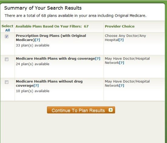 - Now you will come across a window that shows summary of the types of plans available in your area. And you need to select the plan which you like to view, with the help of checkbox at the left side.