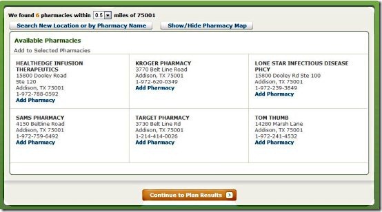 - After selecting the pharmacy click on “Continue to plan Results”.