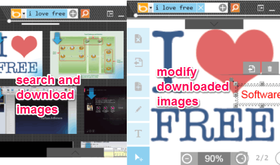Its beautiful interface lets you search images, download images, and modify those images; just like it is visible in above screenshot.