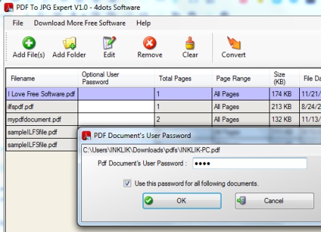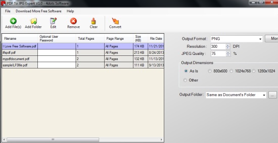 Screenshot below shows PDF To JPG Expert interface which is quite easy to use.