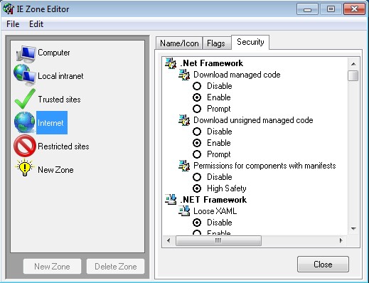 - Allows you to easily edit Internet Explorer security zones