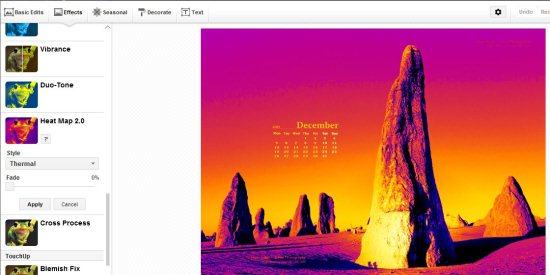 Google+ creative kit includes basic editing tools like crop, rotate, exposure, colors, sharpen, etc. Moreover, you may also add other effects, seasonal effects, decorate effects and text to your photos. Moreover, it includes an Auto Fix button which performs basic edits in your photo with a single click.
