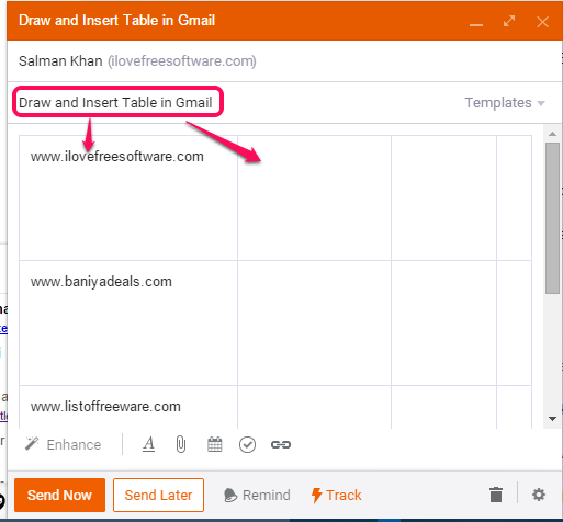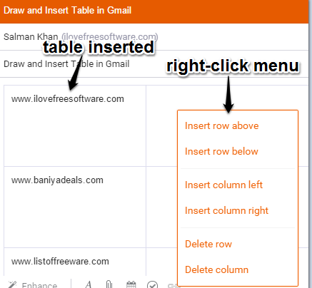 Mixmax Chrome extension lets you add a table with number of rows and columns of your choice. Moreover, you can also expand or shrink the size of any row and column. Apart from this, it also gives you option to add or remove rows and columns from the table. So whenever you feel the urge to use table while composing a new mail in Gmail, I believe this extension would be perfect to use.