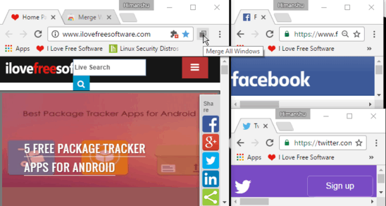 There is another similar Chrome extension which lets you see multiple tabs in a Chrome window in form of a grid. Previously, we have also covered a tutorial which explains how to organize multiple opened windows in Chrome. Today in this tutorial I will tell you how you can merge all opened Chrome windows to a single Chrome window.