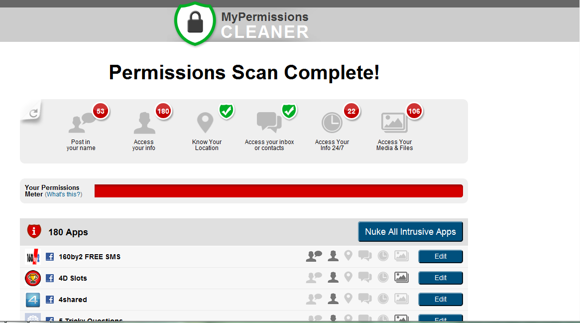 Once the scan is complete the app will list all the apps in your profile and provide you information about their activities in your account. Once you get the information about all the services in your account you can go to the edit option and make the appropriate changes. For example if you scanned you Facebook profile then you will get the information about the apps that have been posting on your behalf or the apps that have been accessing your and your friends’ profiles information.