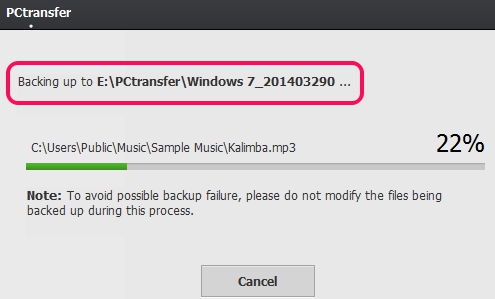 After selecting the required files, you can select a backup drive where you want to keep backup. After this, you can tap on Backup button to start the backup process. In the similar way, you can create multiple backups, and all backups will be saved in PCtransfer folder in different sub-folders on destination location.