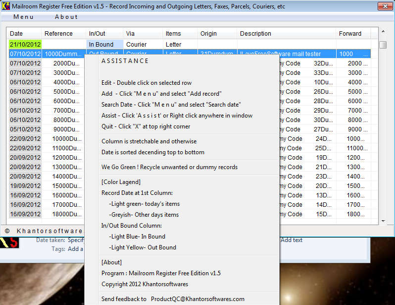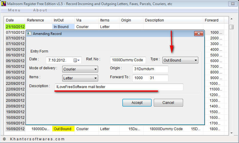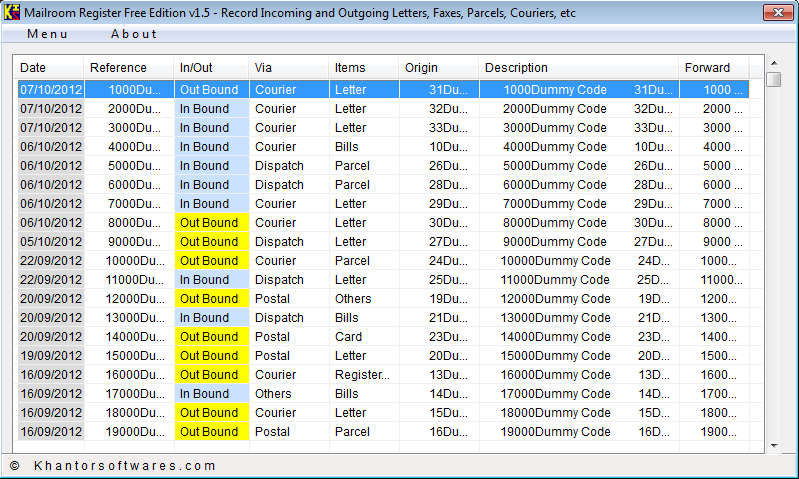 Mailroom Register is a free application which you can use in order to keep track of your incoming and outgoing letters, faxes, parcels, couriers, etc. Everything and anything that’s being sent or received via delivery services can be logged and kept track of with the help of Mailroom Register. This free application is very simple to use, it requires no installation,and you can add items to it in just a few mouse clicks.