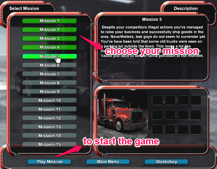 Step 2:After you choose the mission your game will start. You will see a giant truck crawling on the screen, as soon as the light turns green you will have the control over it. Just navigate you way through the road, trying to keep that thing straight.