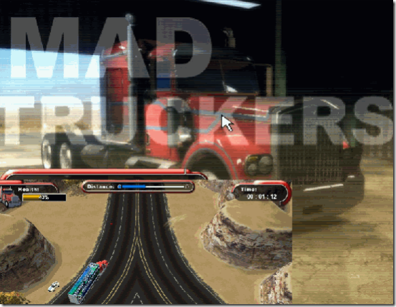 Mad Trucker is a lightweight Truck Driving PC game. The game allows you to get behind the wheel of a large truck full of food items, that you need to deliver within two minutes. There is a total of 15 missions, and whenever you complete one, there is reward virtual money that you get. There are few things that you have to keep in mind while driving the truck. You need to complete it before the time limit of two minutes runs out. There is a health bar at the top that shows, well, your, or more specifically, your truck’s health. Starting with a full bar at 100%, it gets reduced by 5% each time you bump into an obstacle on the road, or hit a vehicle unfortunate enough to be on the same road as a 18 wheeler semi being maneuvered by a crazed dude or dudette behind the keyboard (that would be you!).