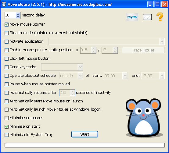 • Move Mouse window can be minimized to system tray, on pause, or on start through ‘Minimize to system tray’ ‘Minimize on pause’ and ‘Minimize on start’ options respectively.