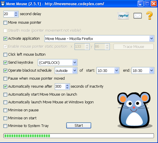 Move Mouse is a free mouse utility which is used to generate mouse activity. Using this free mouse utility, you can move your mouse pointer, send a keystroke, click on the left mouse button or use any of these three as combinations and generate mouse activity. People often work on applications where they do not strike keys or use mouse. In such scenarios, many a time people get disturbed by screensavers and similar processes that run when the monitor is in leisure. It would be great to have an application that manages these minor but irritating issues. Move Mouse is an application that initiates mouse or keys activities at regular intervals as required. It also helps you to interrupt screensavers, keep your working sessions active without really bothering you. All it requires is the proper setting of the time schedule using this free mouse utility. You can also think of this utility as a free mouse activity generator.