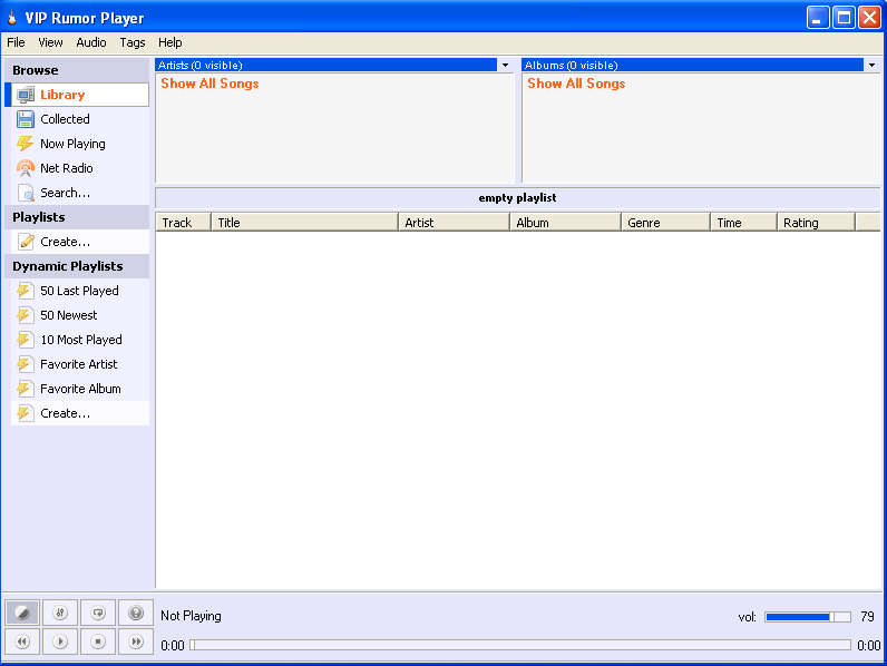 Interface design of VIP Rumor Player looks very modern, and also very different from what you would normally expect to see when someone says a music player. Winamp made us think that music players are supposed to have skins, which we can change to our taste, but somewhere underneath it all, there’s the basic interface, just like the one on VIP Rumor. You might think that skins which Winamp has are great, and that might be the case, but such additions can cost your computer a lot of RAM, and even processor time, for these reasons using VIP Rumor might be the way to go if you have an older computer for example.