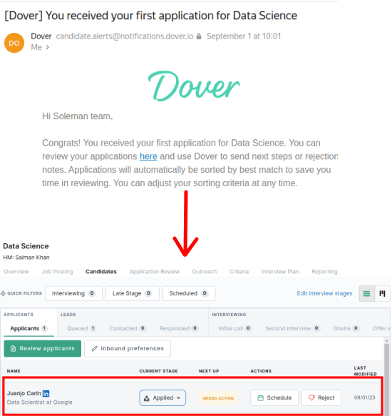 - Dover also offers you a free Chrome extension that helps you source candidates directly from LinkedIn. Just install the extension and then in a click, you can get potential candidates for the job right from LinkedIn profiles.