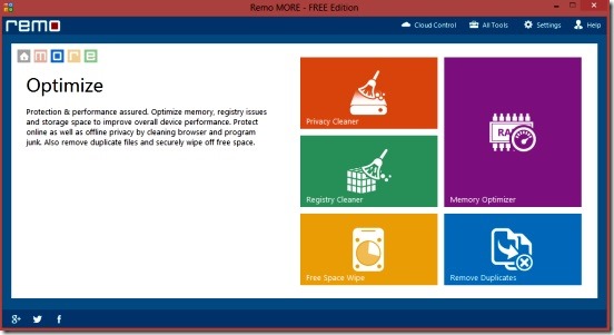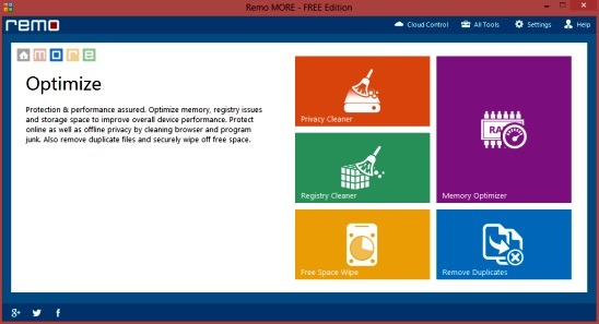 Remo MORE, certainly is a good PC performance software. It provides a very minimalist and easy to use interface to manage and monitor your PC. It has more then 30 different tools to manage, optimize, recover, and enhance your PC. And to add more to the usability, it also provides a website remote control feature to monitor, manage, and enhance your PC. All you need to do is download the freeware and install it in your PC. The download file size is just 24.8 MB. It is using this freeware, you can then connect the PCs to your Remo web account, for cloud controlling.