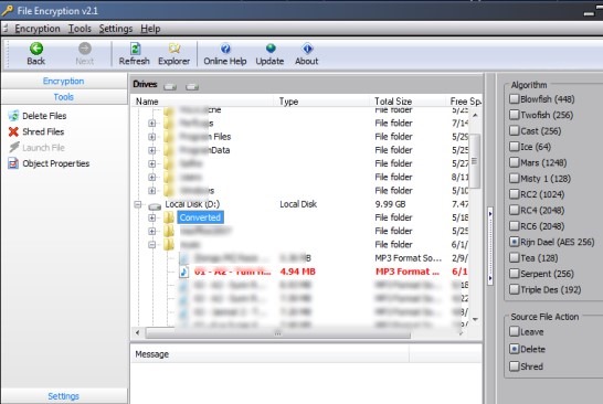 File Encryption is a free software for Windows that helps to encrypt files with password and also lets you select folders to encrypt & secure them. Thus you will be able to add multiple files and folders at a single time for encryption. File Encryption provides multiple algorithms for encrypting files. These includes: blowfish, twofish, misty, serpent, cast, mars and more. You can select any algorithm and protect your files. Encryption simply helps to prevent your files to be read or written by any unauthorized person.