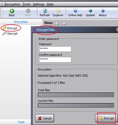 - And the leftmost section helps to encrypt files with password and also provides encryption settings. Using settings, you can set master password for its interface and can also make encrypted files as hidden.