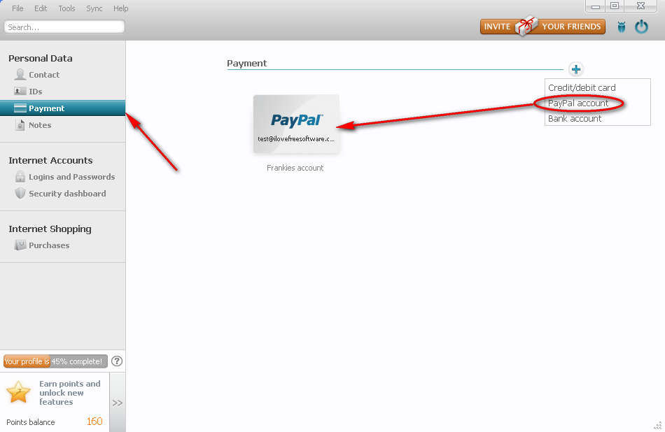 Open up the Payment portion of Dashlane where you can choose to store PayPal password by clicking on the blue plus sign in the upper right corner. After you do that a simple window will pop up where you actually enter you data, click save and the account will appear on the list. Now start your browser. The one which you’ve chosen to install Dashlane to, and let’s visit the PayPal website: