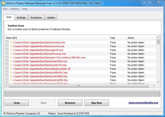 NoVirus Thanks Malware Remover is a nice anti-malware software to detect and remove malware, spyware, and other internet threats from your PC. Although it takes time while scanning PC, but performs thorough checks to figure out each suspicious element. NoVirusThanks Malware Remover is completely free.