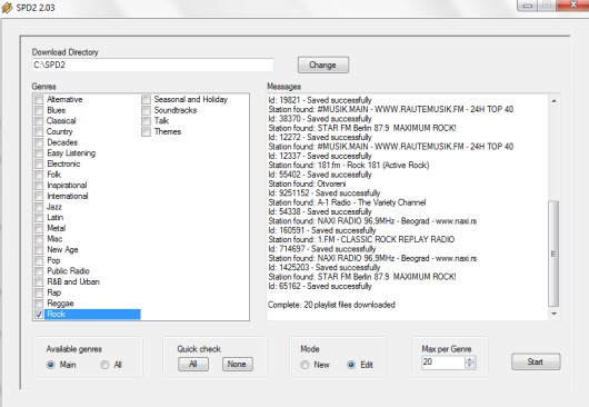 SPD2 interface provides the list of all genres or main genres available in Shoutcast website and each genre contains multiple radio station playlists, like: 181.FM – The Buzz, Rock FM Romania, MarinaFM, Beat 94.7 FM, BLUES RADIO, Radio10, Today’s Hot Country, and much more. You can select from Genres and can download playlists in just a few mouse clicks.
